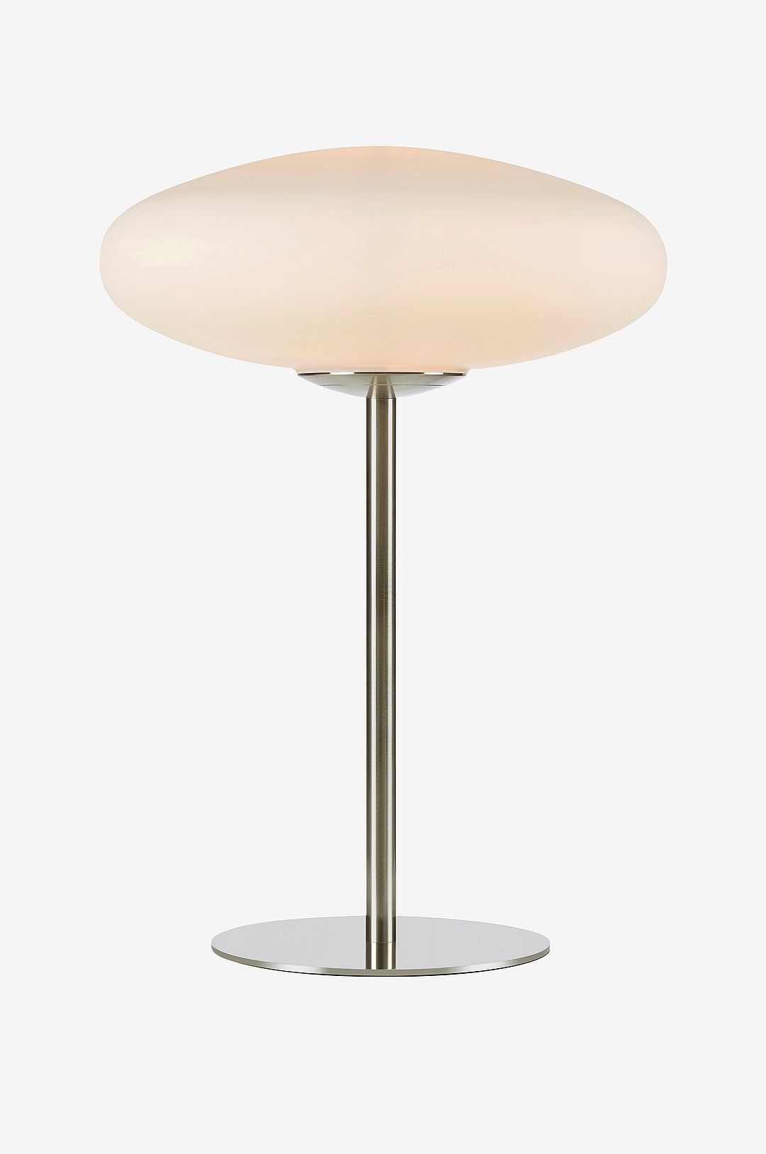 Locus bordslampa från Markslöjd. Bas i metall och skärm i ovalformat glas. 2m pvc kabel med brytare på sladden och väggkontakt. 1xG9, max 18W. Ljuskälla ingår ej.