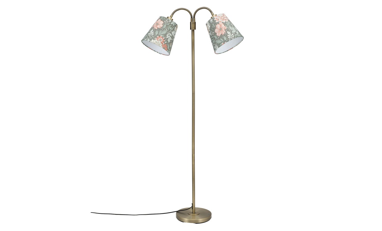 Amy är en stilren golvlampa i metall med två justerbara armar, perfekt för dig som vill kombinera funktionell läsbelysning med dekorativ inredning. Lampan är utrustad med två lampskärmar i det handmålade mönstret Dahlia Garden, designat av Jenny Hahne Gadd för Boråstapeter. Den milda färgskalan tillsammans med de graciösa blommorna skapar en varm och harmonisk känsla i rummet.Design & egenskaperStilren golvlampa med två justerbara armar.Lampans mått är: 150×41 cm.E27, max 25W, ljuskälla ingår ej.