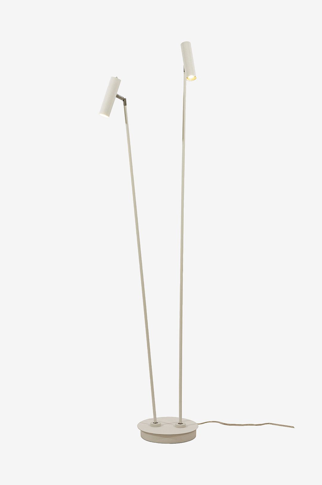 Artic dubbel golvlampa i vitlackerad metall med detaljer i krom. Integrerade LED -ljuskällor som ger behagligt varmt vitt ljus. Ljuset slås på och av med en dimmer på lamporna som har justerbara huvud och fot.
