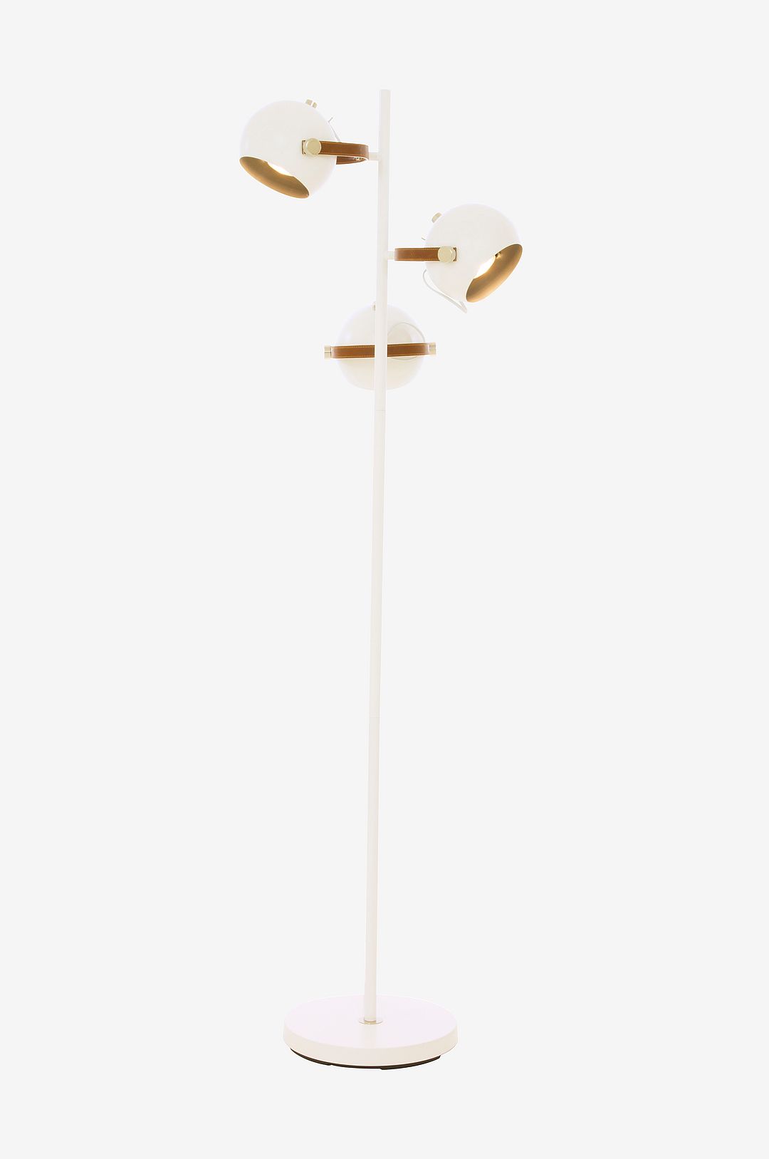 BOW golvlampa 3-arms. Lamphuvudet kan justeras till önskat läge. Strömbrytare på lamphuvudet. Material: metall och konstläder