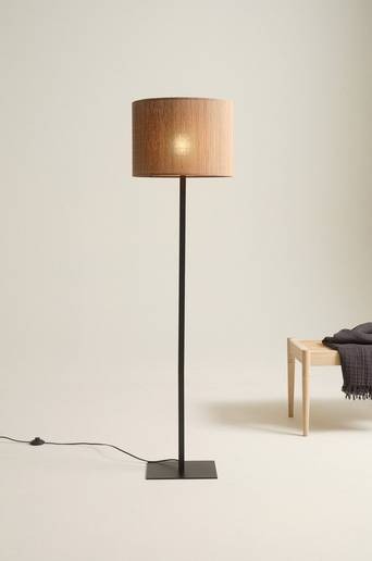 Golvlampa i enkel och stilren modell med rak lampskärm av bambu som ger lampan en mjukare karaktär. Metallfoten har pulverlackerad finish. Lampskärmens insida är av frostad pvc som reflekterar ljuset. Svart sladd med strömbrytare på sladden. Strömbrytaren är av modellen som du trampar på, ett enkelt sätt att tända och släcka golvlampan. Material: Fot: Metall. Skärm: Bambu och pvc. Storlek: Total höjd 156 cm. Skärm: ø 42 cm, höjd 30 cm. Sockel/lampa: 1 st E27, LED max 5. Ljuskälla medföljer ej. Tips/råd: Vi rekommenderar filament dekorationslampa LED dimbar 4 w, 1622940-01 eller 1622941-01.