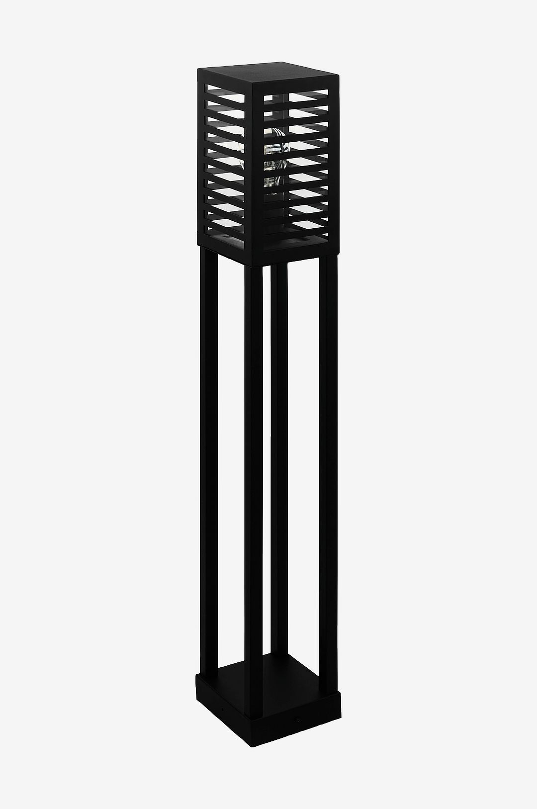 alamonte 3 har en kubformad svart metallkropp med glasrutor upptill. Den randiga designen fulländar stolplampans distinkta utseende samtidigt som den skapar en behaglig atmosfär och ger indirekt ljus. Med ip44-skydd mot stänkvatten är den här pollarlampan lämplig för utomhusbruk och passar utmärkt in i moderna utomhusområden. Produkten kräver 1 e27-glödlampa som inte ingår.