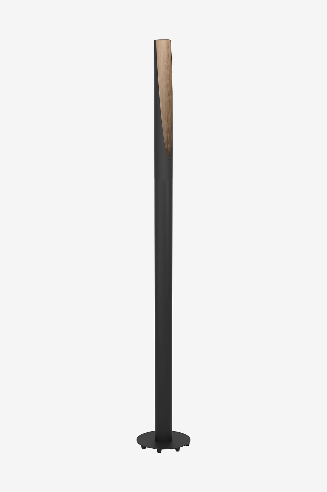 Den rörformade golvlampan barbotto har en stomme i svart metall med en insida i träfanér. Golvlampan mäter 136,5 cm i höjd och avger ett behagligt varmvitt ljus. Den avfasade övre delen av lampan gör att man kan se den eleganta träfanérbeklädda insidan. Golvlampan kan enkelt tändas och släckas med hjälp av en fotbrytare. Golvlampan har en modern design och ger alla rum en stämningsfull och elegant belysning, oavsett om det är i sovrummet, vardagsrummet, matsalen eller hallen. Produkten innehåller 1 x led gu10-glödlampa.