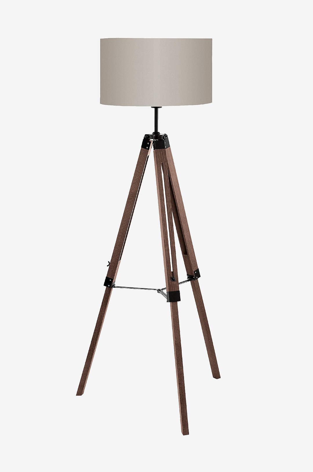 Golvlampan lantada har en höjdjusterbar trefotad lampfot i naturligt trä och en rund tygskärm i beige eller taupe. De enkla kromfärgade eller svarta detaljerna kompletterar det eleganta utseendet på ett vackert sätt. Lampan tänds och släcks enkelt med hjälp av inline-brytaren. Oavsett om det är i sovrummet, vardagsrummet eller matsalen ger golvlampans hemtrevliga design mysig belysning för alla utrymmen. Glödlampan ingår inte. Produkten har en e27-lamphållare och kräver en e27-glödlampa.