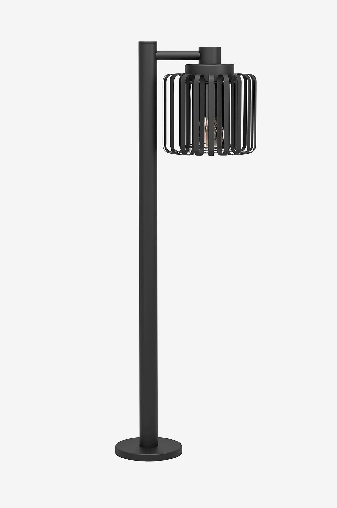 selinus Pathway Light har en svart metallstomme med en cylindrisk lampskärm av stålband. Lampskärmen är nedåtriktad och har en inre glascylinder. Den moderna burdesignen kompletterar stilfullt gångbanelampans moderna utseende samtidigt som den ger en dramatisk visning av ljus och skugga genom den utskurna designen. Pollarlampan är lämplig för utomhusbruk tack vare sitt ip65-skydd mot damm och lågtrycksvattenstrålar. Den eleganta designen gör att produkten smälter in i alla moderna utomhusmiljöer – den perfekta ytterbelysningen för gångar och uppfarter. Den avbildade glödlampan ingår inte. Produkten har en e27-lamphållare och kräver en e27-glödlampa.