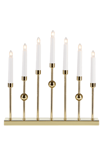 av metall med 7 ljus. Höjd 37 cm. Bredd 37 cm. Djup 6 cm. Sladdlängd 1,8 m med strömbrytare. E10 (lampor ingår).