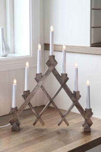 7-armad träljusstake Rut. Höjd 53 cm. Djup 7 cm. Bredd 42 cm. Anslutningskabel med brytare 1,8 m. Ljusstaken är betsad och nyansskillnader mellan olika ljusstakar kan förekomma beroende på träslaget och hur mycket bets som träslaget suger åt sig. Nyansskillnader kan även förekomma när det gäller trä av samma slag.