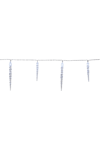 Utomhusslinga med 40 st istappar i två längder, 11 cm och 16 cm. Slingan har timer och 8 chaser funktion. Styrs av en knapp på transformatorn. Perfekt för att skapa en härlig stämning med i vintertid. Transparent kabel och med IP44 transformator. Spänning 3.1V. Effekt 0,06W.