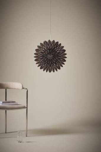 Julstjärna av papper, formen har inspiration från en blomma. Kanske näckrosen varit förebild? AGENA är mysig och lyser upp ditt fönster i vintermörkret. Lamphållare med vit plastsladd ingår. Viss montering krävs. Monteringsanvisning medföljer. Material: Papper. Storlek: ø 44 cm. Sockel/lampa: 1 st E14, LED max 5 w. Ljuskälla medföljer ej. Tips/råd: AGENA är en julstjärna som är lite friare i sin tolkning och är vacker vid fler tillfällen än just advent.