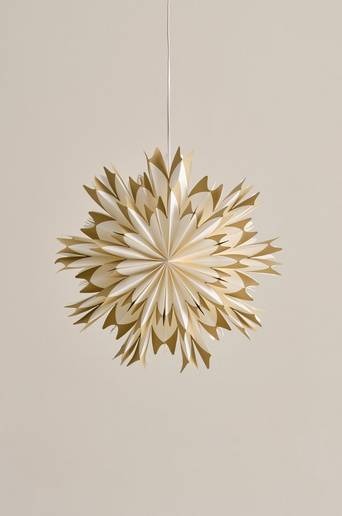 Julstjärnan CERES är tillverkad av papper och har en spektakulär form och en iögonfallande design som kommer att försköna vilket rum som helst. CERES är genomtänkt utformad för att vara lätt att fälla upp och ner, vilket gör den enkel att förvara och återanvända år efter år. Julstjärnan CERES ger festlig elegans till ditt hem. Lamphållare med plastsladd ingår. Produkten är certifierad med Forest Stewardship Council (FSC), vilket innebär att den innehåller trä som avverkats i ett ansvarsfullt skogsbruk som tar hänsyn till människor och miljö. Licensnummer & testinstitut: Inmark Exports FSC-C185719 TÜV SÜD Material: papper. Storlek: ø 50 cm, djup 20,5 cm. Sockel: E14. Effekt max: 25.0 w. Ljuskälla ingår ej. Monteringsanvisning medföljer.