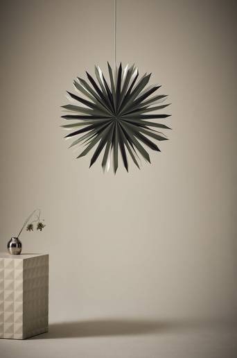 Julstjärna av papper, formen är en fin mix av snöstjärna och blomma. SIRIUS sprider ett hemtrevligt sken i ditt decemberfönster. Lamphållare med vit plastsladd ingår. Viss montering krävs. Monteringsanvisning medföljer. Material: Papper. Storlek: ø 60 cm, djup 20 cm. Sockel/lampa: 1 st E14, LED max 5 w. Ljuskälla medföljer ej. Tips/råd: SIRIUS är en julstjärna som är lite friare i sin tolkning och är vacker vid fler tillfällen än just advent.