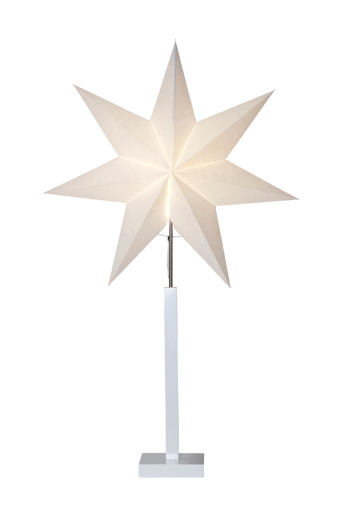 Stjärna på fot. Ger ett stilrent och modernt intryck, placera i fönstret för att skapa den perfekta stämningen. E14-sockel, ljuskälla ingår inte. Vit anslutningskabel, 180 cm. Höjd 100 cm, bredd/längd 60 cm och djup 22 cm. Max effekt 25W.