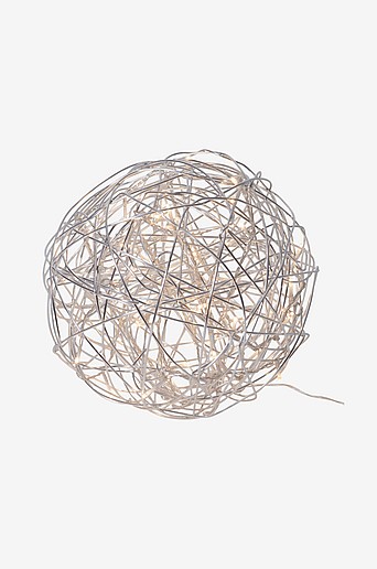 Dekorativt klot får både inom- och utomhusbruk. 30 cm i diameter. IP44 klassad. Inuti dekorationen finns en LED-ljusslinga som avger ett varmvitt sken, ej utbytbara ljuskällor. Designad av Charlotte Falck.