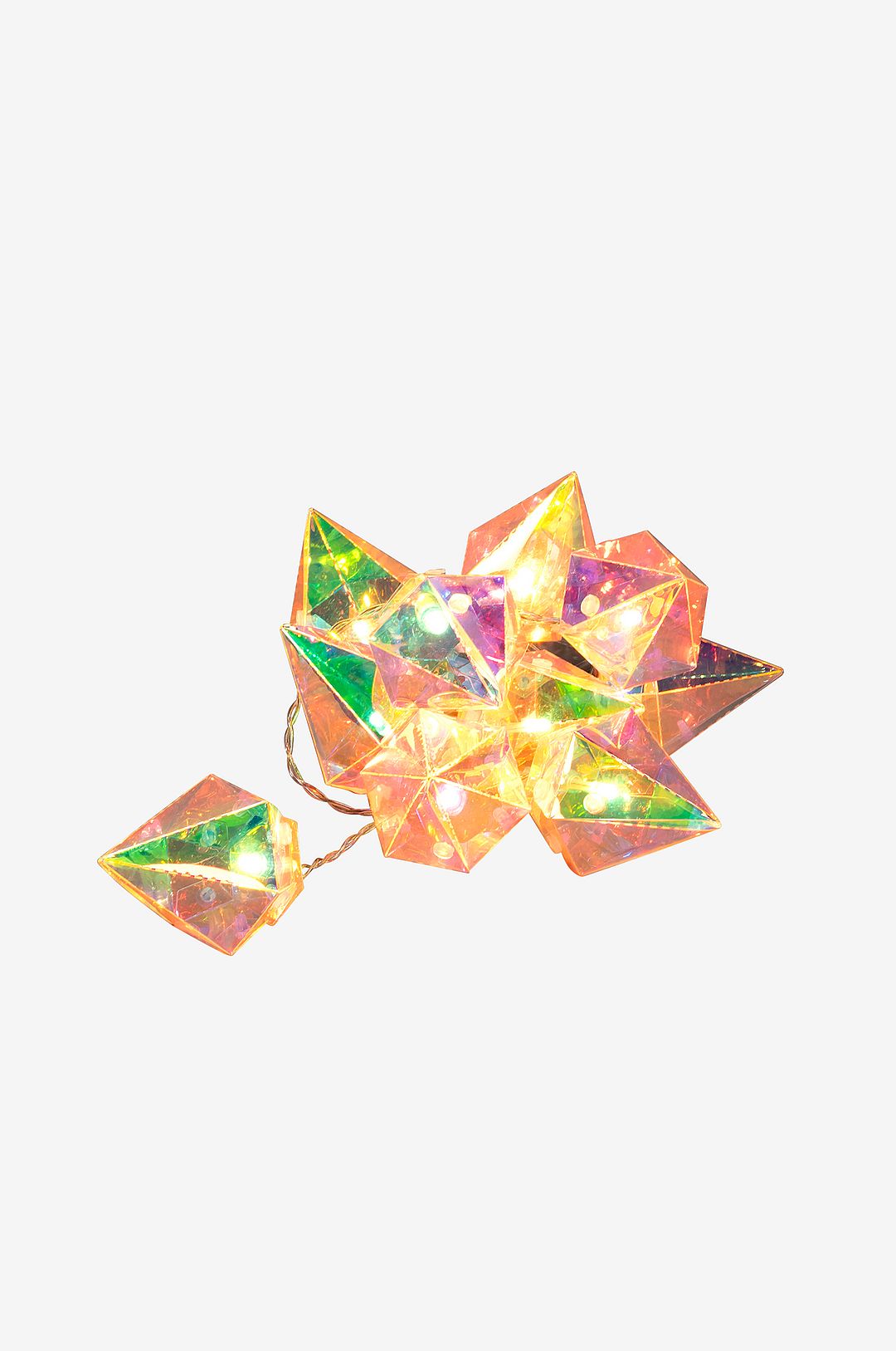 Ge ditt hem en gnistrande touch av lyx med denna batteridrivna ljusslinga med 10 led-lampor. De unika prismaformade glödlamporna skapar ett vackert, skimrande sken som utstrålar en exklusiv diamantliknande effekt – perfekt för att förhöja stämningen vid festliga dukningar eller som elegant inredning. Med en praktisk timerfunktion och batteridrift är det lätt att placera var som helst utan att behöva krångla med sladdar.