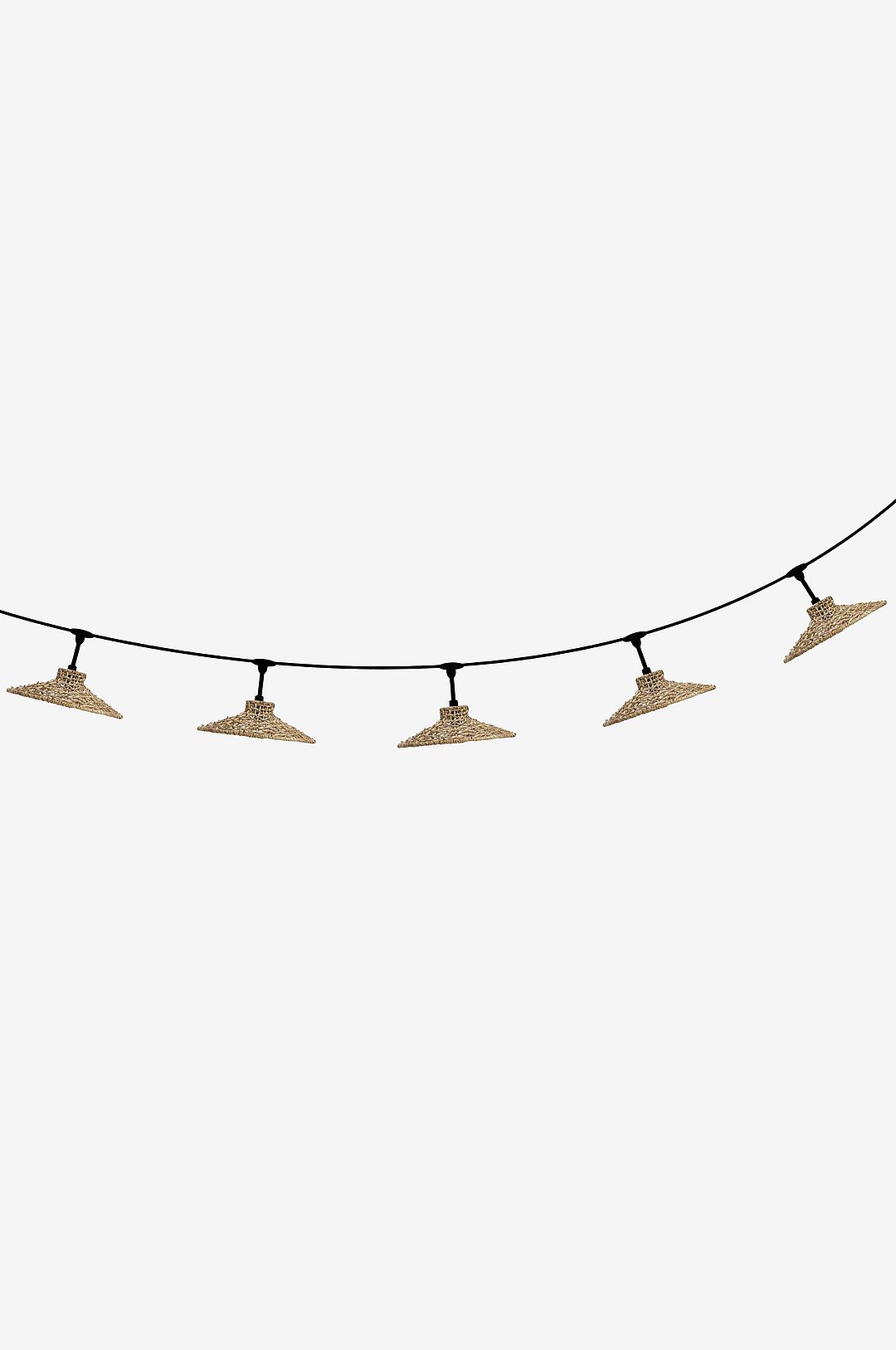 Flex out ljusslinga för utomhusbruk (ip44) med 5xe27 lamphållare. Totalt: 6,5 m. 2,5 m till första lamphållaren och sedan 80 cm däremellan. Med 5 sari-lampskärmar. Eftersom det är ett naturmaterial passar det bäst under tak, i ett slutet utrymme eller inomhus. Om den används utomhus kommer materialet att förändras med patina.skärmen är 29 cm bred och 9 cm hög.