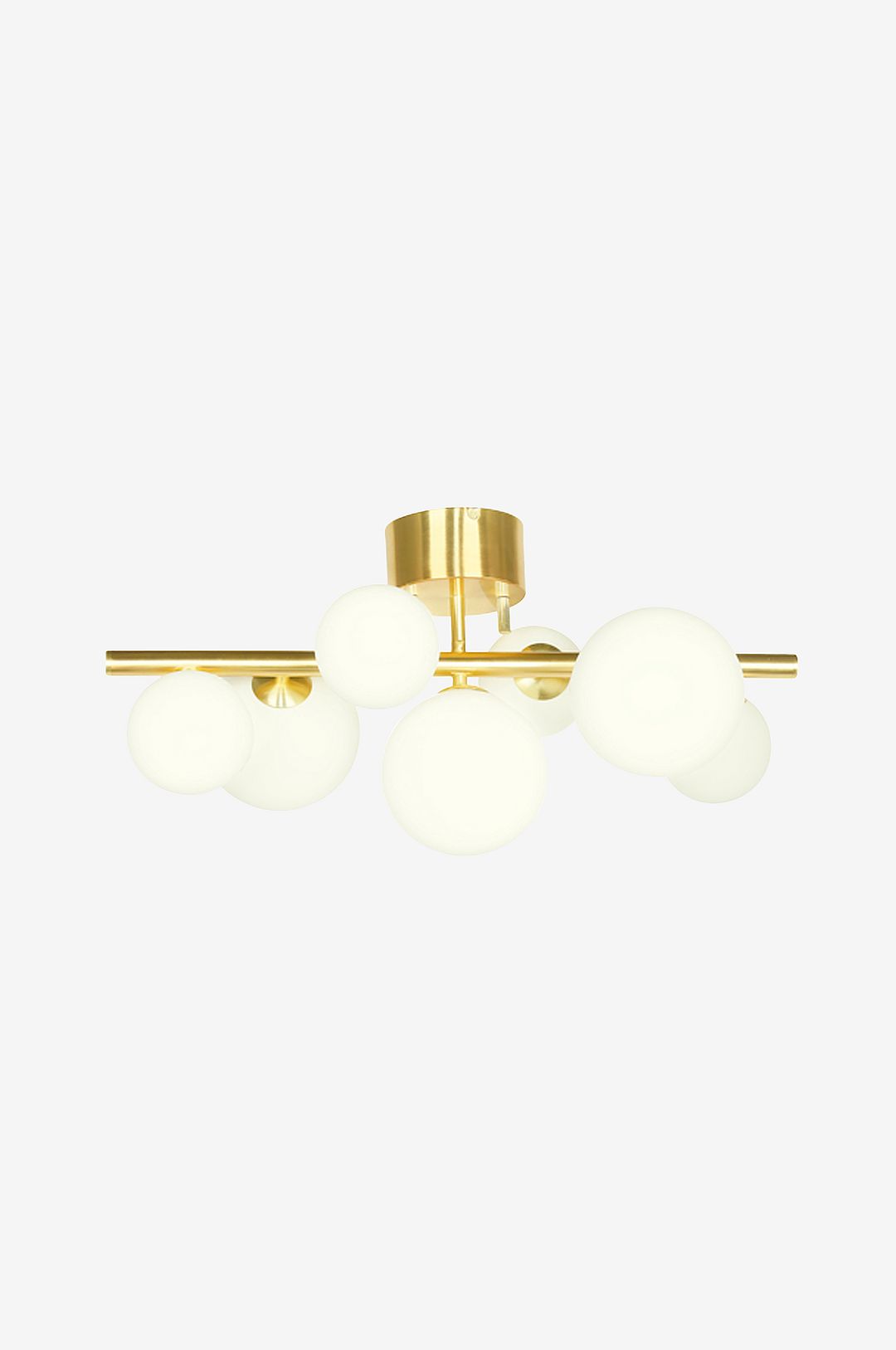 Plafond i metall och glas. Monteras i taket med krok. Ljuskällor ingår inte.
