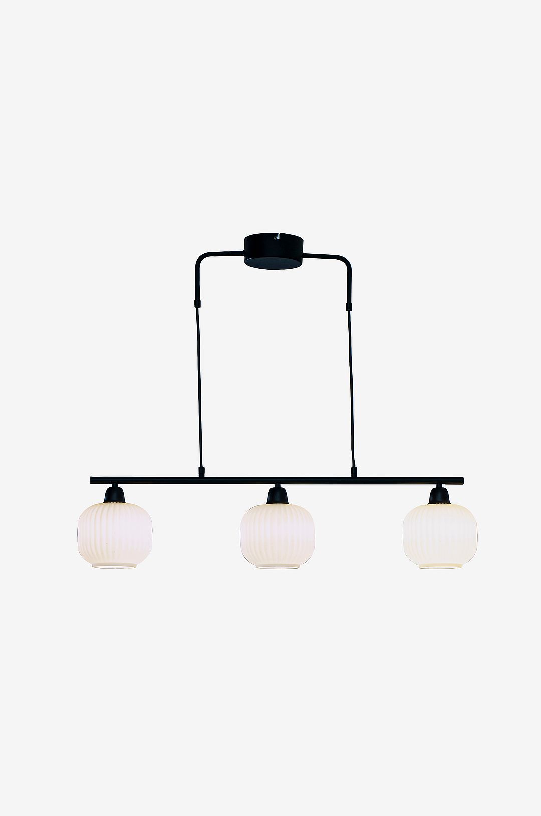 Elin takpendeln har en stilren design i metall och tre kupor av dekorativt räfflat glas som sprider ett milt och skonsamt ljus. Ett perfekt och snyggt alternativ ovanför middagsbordet, köksön eller kanske över ett sideboard. Kombinera gärna med våra andra lampor i familjen elin.