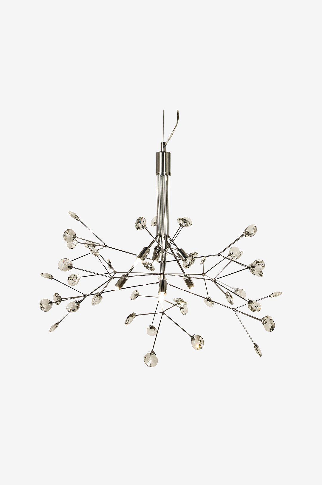 FIESTA taklampa, krom. Crystal prisma lampa som kan justeras i höjd. Monterad på krokens tak. Takupphängning med kopp är metall. Material: metall
