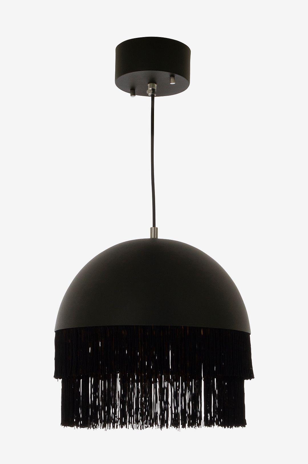 Taklampa i metall och textil. Enkel montering i tak med krok. Ljuskälla ingår inte.