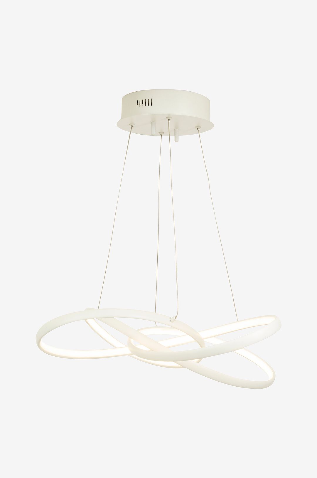 Nebulosa taklampa LED i färg vit. Lampans huvudmaterial är metall/aluminium/plast. Ljuskälla med 48W max wattstyrka. Ljuskällor medföljer. Ljusstyrka på ljuskällan är 3000 lumen med 3000 kelvin färgtemperatur som motsvarar varmvit ljus. Föväntad livstid på LED från 100% til 70% ljuseffekt är 50000 timmar och LED är inte utbytbar. Ljuskällan er dimbar. Takkopp är gjord av metall vit och lampan monteras med krokupphäng. Lampan ansluts til ström med kopplingsplint, lamppropp kan monteras. IP-klassificeringen på armaturen är IP20