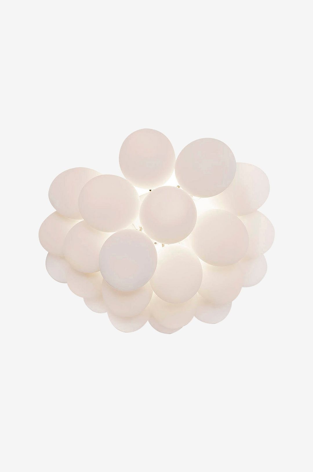 Gross är en fantastisk, exklusiv plafond i glas bestående av 20 kulor som formar sig likt ett moln. Glaskulorna är skira med en härlig finish. Gross plafond finns i två storlekar där detta är den större varianten med en diameter på 50 cm. Till denna taklampa behöver du 6 ljuskällor med G9-sockel, vi rekommenderar en dimbar led ljuskälla för att du ska få ut det mesta av din taklampa. Takkontakt ingår ej.