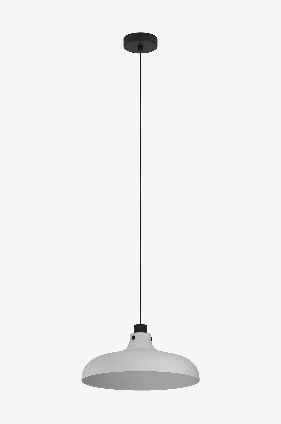Pendellampan matlock har en konisk lampskärm i metall med en ljusgrå finish och svarta industriella detaljer. Produkten inkluderar en rund svart metallskärm med en svart textilkabel. Den snygga pendellampan har en industriell design och kommer att erbjuda modern belysning för ditt utrymme, oavsett om det är i vardagsrummet eller ovanför bordet i matsalen. Produkten har en e27-lamphållare och kräver 1 x e27-glödlampa, som inte ingår.