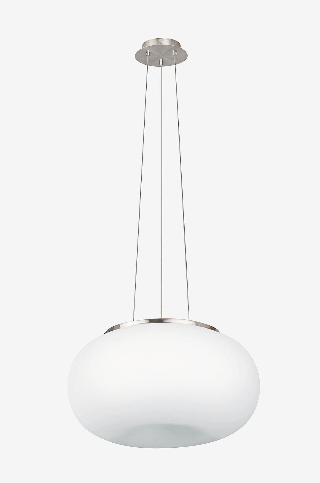 Pendellampan optica har en rund lampskärm i vitt opalglas med en diameter på 35 cm. Lampan har ett tak i matt nickel och tre metallkablar i samma färg. Pendellampan smälter sömlöst in i moderna interiörer och ger elegant belysning i alla utrymmen, oavsett om det är i vardagsrummet eller matsalen. Glödlampan ingår inte. Produkten har en e27-lamphållare och kräver en e27-glödlampa.