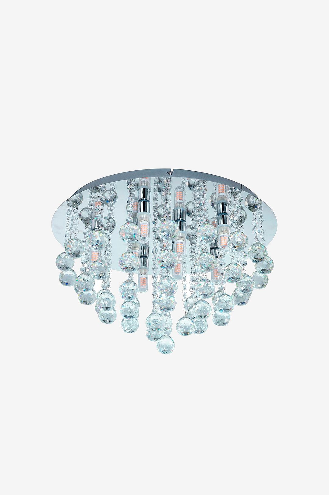 almonte led taklampa har en kromfärgad rund metallbas som är upphängd med en uppsjö av klara kristaller. De exklusiva kristallelementen skapar en gnistrande, högkvalitativ look så snart lampan tänds. Taklampan är lämplig för användning i badrummet tack vare sitt ip44-skydd mot stänkvatten. Produkten levereras komplett med g9-ledlampor som ger ett behagligt varmvitt ljus.