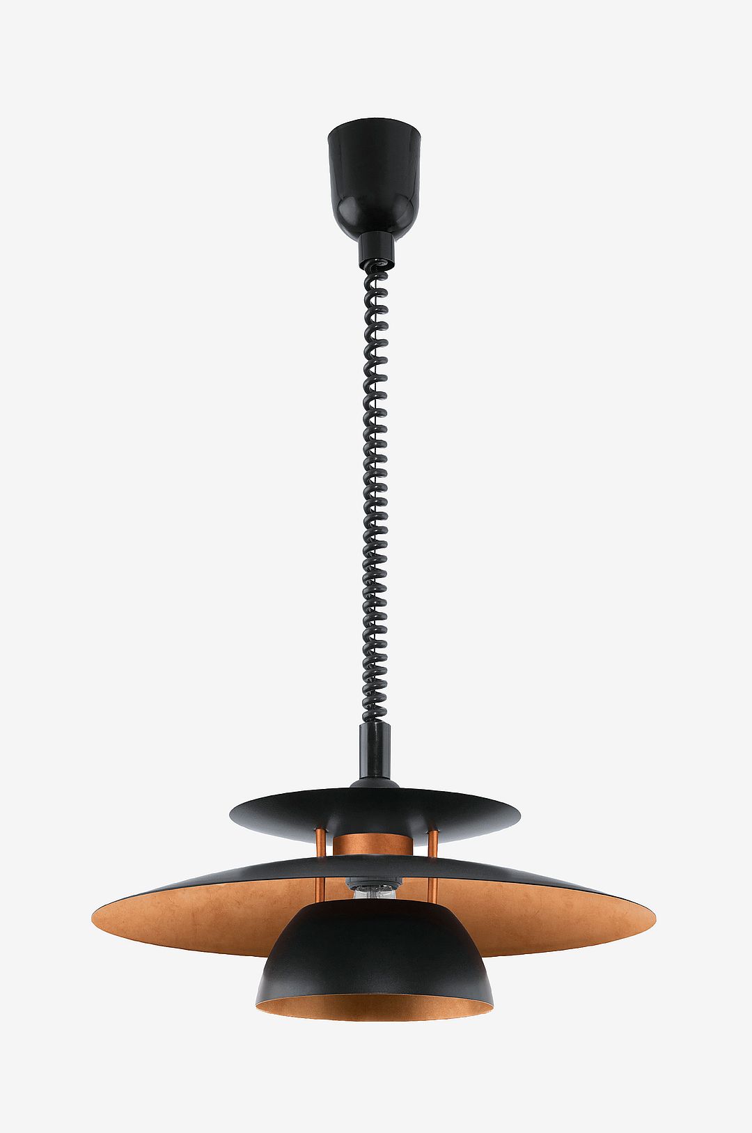 Pendellampan brenda är tillverkad i metall och har två lampskärmar. Tack vare produktens unika design kastar glödlampan ljus nedåt och utåt från mitten, vilket skapar en dramatisk belysning i ditt hem. Produkten har en spiralkabel som gör det möjligt att justera lampans höjd. Pendellampan har en futuristisk design som smälter in i moderna interiörer och kompletterar kromdetaljerna på lampkroppen. Pendellampan ger en snygg belysning i köket eller ovanför bordet i matsalen. Glödlampan ingår inte. Produkten har en e27 lamphållare och kräver 1 e27 glödlampa.