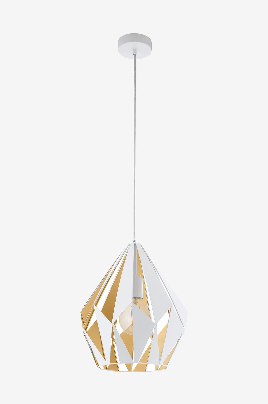 Pendellampan carlton-p har en diamantformad lampskärm i metall i färgerna aprikos, mint eller vit/guld med en vit textilkabel. När pendellampan är tänd skapar den här produkten ett fascinerande ljus- och skuggspel genom de geometriska öppningarna på metallskärmen. Den aprikosfärgade pendellampan kompletterar moderna interiörer och fungerar bra i alla utrymmen, oavsett om det är i vardagsrummet eller ovanför bordet i matsalen. Produkten kräver 1 e27-glödlampa som inte ingår.