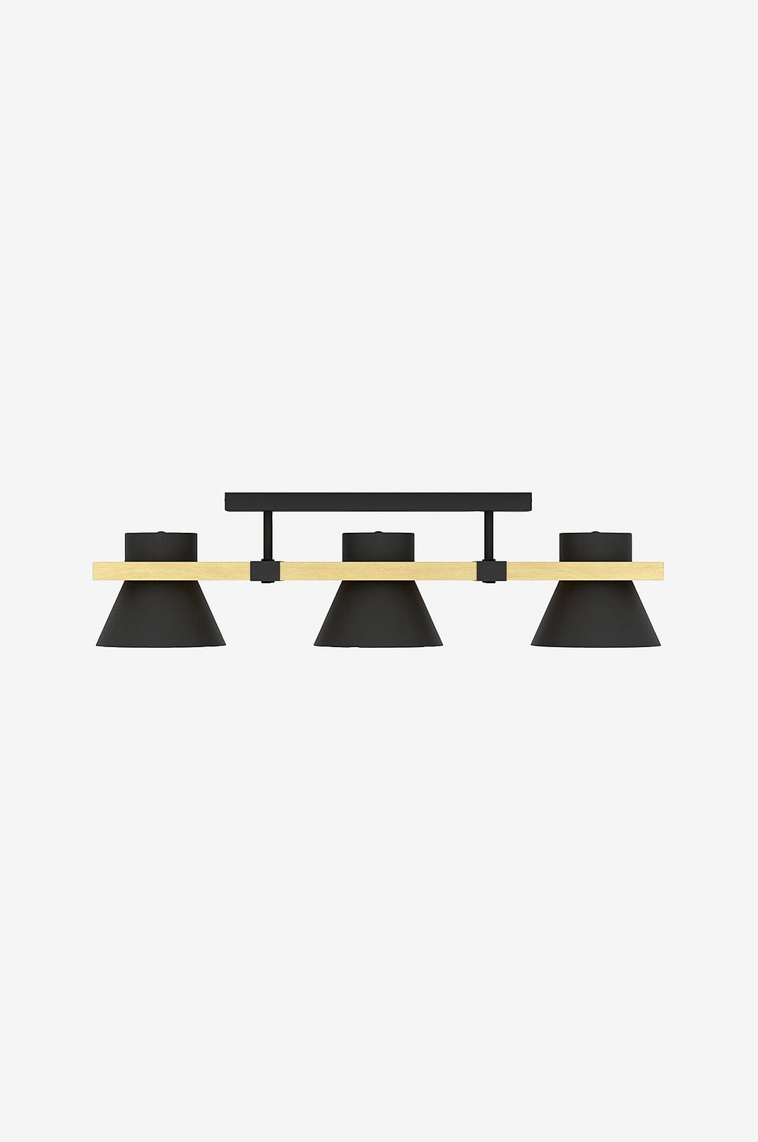 Taklampan maccles har tre svarta taklampskärmar i stål som är fästa på en långsträckt träplatta. Baldakinen är tillverkad av svart stål med matchande träklämmor som understryker taklampans industriella look. Taklampans trendiga mix av metall och naturmaterial passar perfekt in i moderna inredningsstilar och ger en iögonfallande belysning i vardagsrummet, sovrummet eller matsalen. Armaturen har e27-lamphållare och kräver 3 x e27-lampor, som inte ingår.