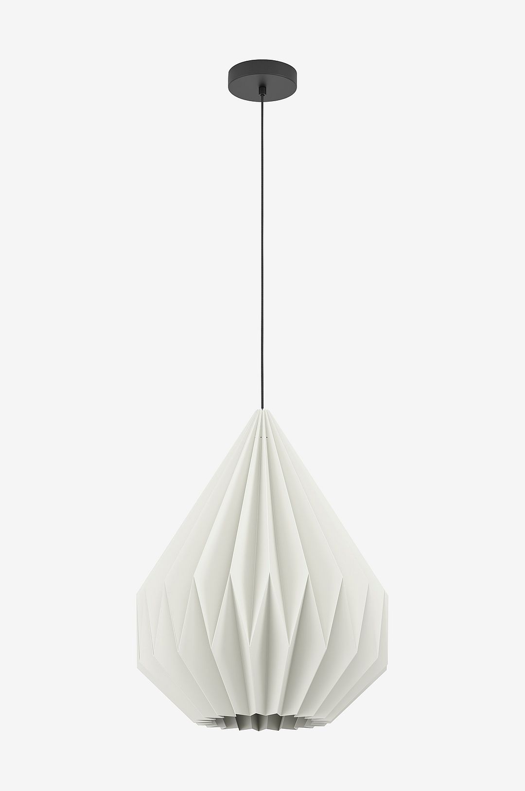 minting är en enkel taklampa i vintagestil med en droppformad lampskärm av vitt vikt papper som hänger från ett svart metalltak. Öppningen i botten av den 45 cm långa pappersskärmen ger riktat ljus som lyser upp området nedanför. Pendellampan smälter sömlöst in i moderna och skandinaviska interiörer och ger elegant belysning i alla rum, oavsett om det är i köket, vardagsrummet eller ovanför matsalsbordet. Pendellampan har en e27-lamphållare och kräver 1 x e27-lampa, som inte ingår.