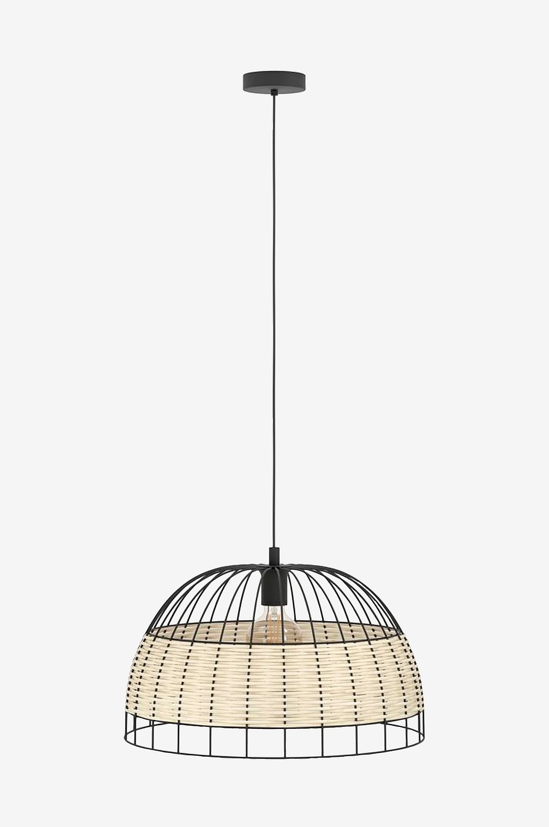 Pendellampan anwick är tillverkad av metall och har en lampskärm med en black metallram i kombination med naturligt vävda rattan remsor. Lampskärmen skapar ett fascinerande ljus- och skuggspel så snart lampan tänds. Hänglampan smälter sömlöst in i trender som vintage och boho. Produkten ger snygg belysning för alla utrymmen, oavsett om det är i köket, vardagsrummet eller ovanför matsalsbordet. Den avbildade glödlampan ingår inte. Produkten har en e27-lamphållare och kräver en e27-glödlampa.