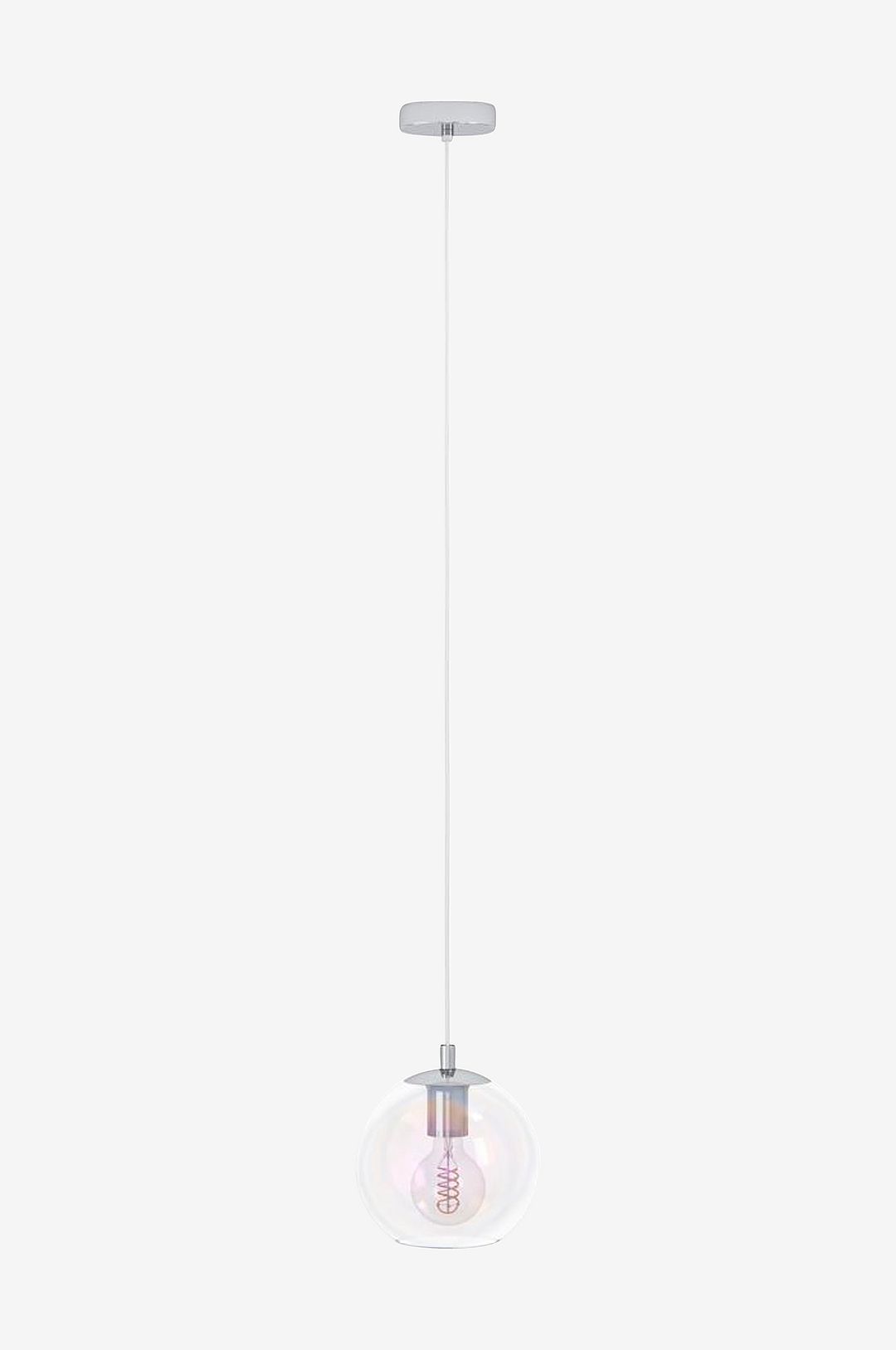 Pendellampan ariscani 2 ger ett enkelt och sofistikerat intryck i ditt hem. Dess klara design framhävs av kombinationen av glänsande krom och ett sfäriskt, iriserande glas – ett elegant blickfång över matbord, diskar eller i korridorer. Glaset skiftar försiktigt i fina färger beroende på ljusinfallet, vilket skapar ett unikt ljusspel. E27-sockeln är kompatibel med många olika dekorativa glödlampor, vilket gör att du kan skapa personliga ljusstämningar. Tack vare sin smala silhuett ser taklampan luftig och diskret ut utan att sakna karaktär. Den passar särskilt bra för moderna och minimalistiska inredningsstilar med en kreativ twist.