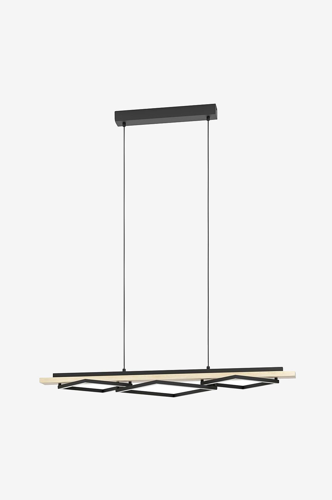 Med pendellampan boyal får du ett modernt blickfång i ditt hem. Lampan kombinerar en elegant, svart metallprofil med ett element av ljust trä, som ger värme och naturlighet. De fyrkantiga led-ramarna i svart skapar geometriska accenter och ger en jämn och bländfri belysning. Kombinationen av tydliga linjer och naturliga material gör lampan lämplig för både moderna och skandinaviskt inspirerade boendekoncept. Den är perfekt för användning ovanför långsträckta matbord eller köksöar. Ljuskällan är fast och avger ett behagligt, varmvitt ljus.