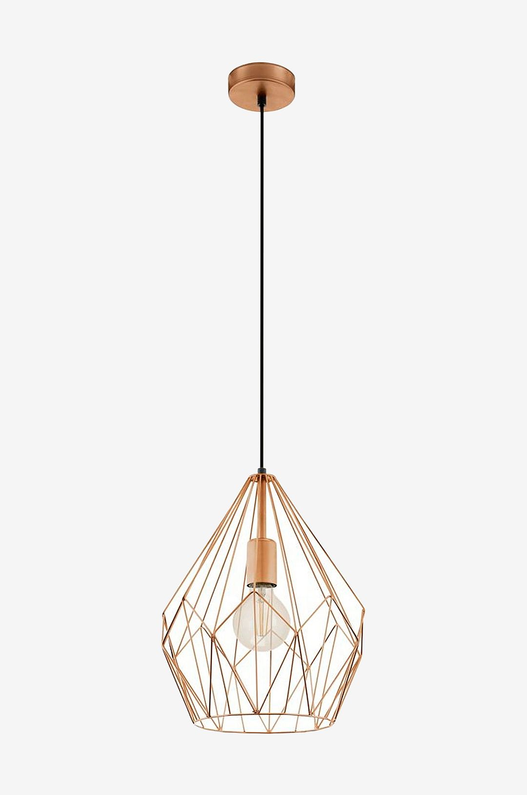 Elegans i belysningen carlton pendellampan, med sin fängslande diamantformade kupa i koppar, erbjuder en unik blandning av modern vintagestil. Den tillför en touch av elegans till alla utrymmen, från kök till matsalar, och skapar ett fascinerande spel av ljus och skugga. Denna pendellampa integreras sömlöst i olika miljöer och förbättrar atmosfären samtidigt som den garanterar hållbarhet och stil tack vare sin högkvalitativa stålkonstruktion.