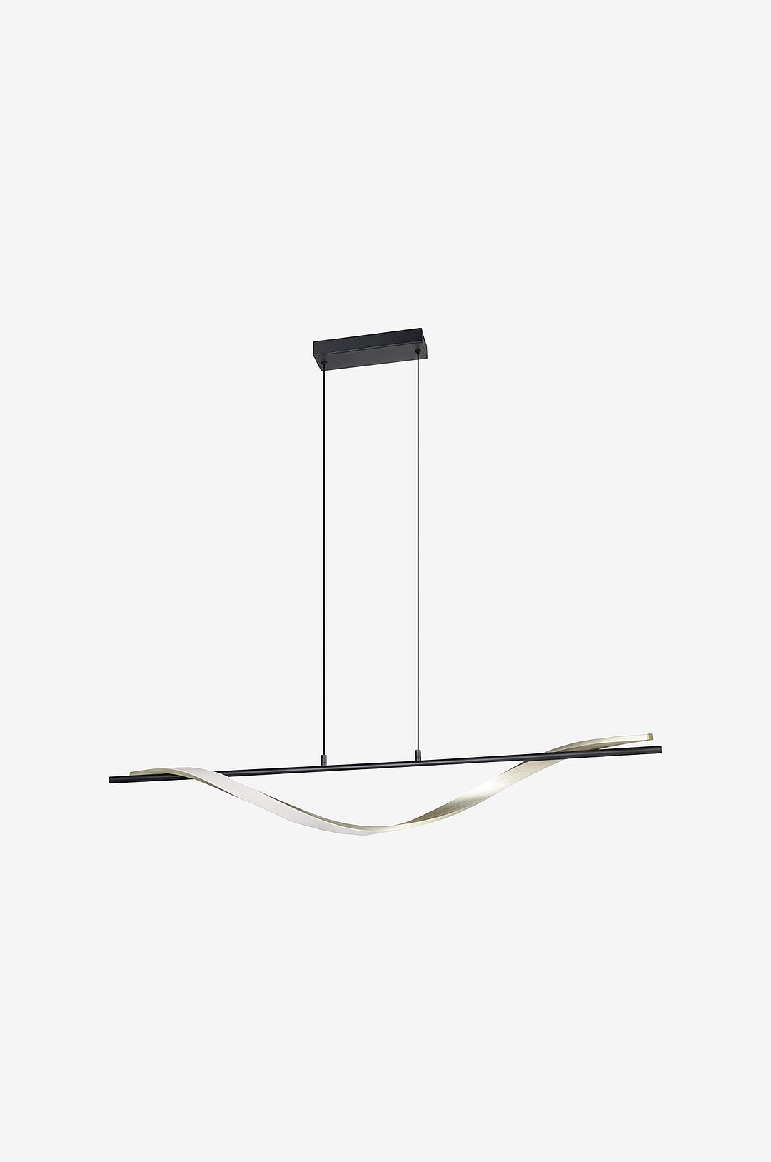 conaprato led-pendellampan imponerar med sin distinkta design och en harmonisk färgkombination av svart och borstad mässing. Den dynamiskt svängda lampkroppen framkallar en flödande rörelse, vilket gör den till ett elegant blickfång ovanför matbord eller diskar. Med den medföljande fjärrkontrollen kan ljusfärgen justeras steglöst från varmvitt till dagsljusvitt (cct-funktion) – perfekt för alla stämningar och tider på dygnet. Ljusstyrkan kan också enkelt justeras. Pendellampan kombinerar design och funktion på ett modernt sätt och ger en elegant touch till ditt hem med sitt högkvalitativa metallhölje.
