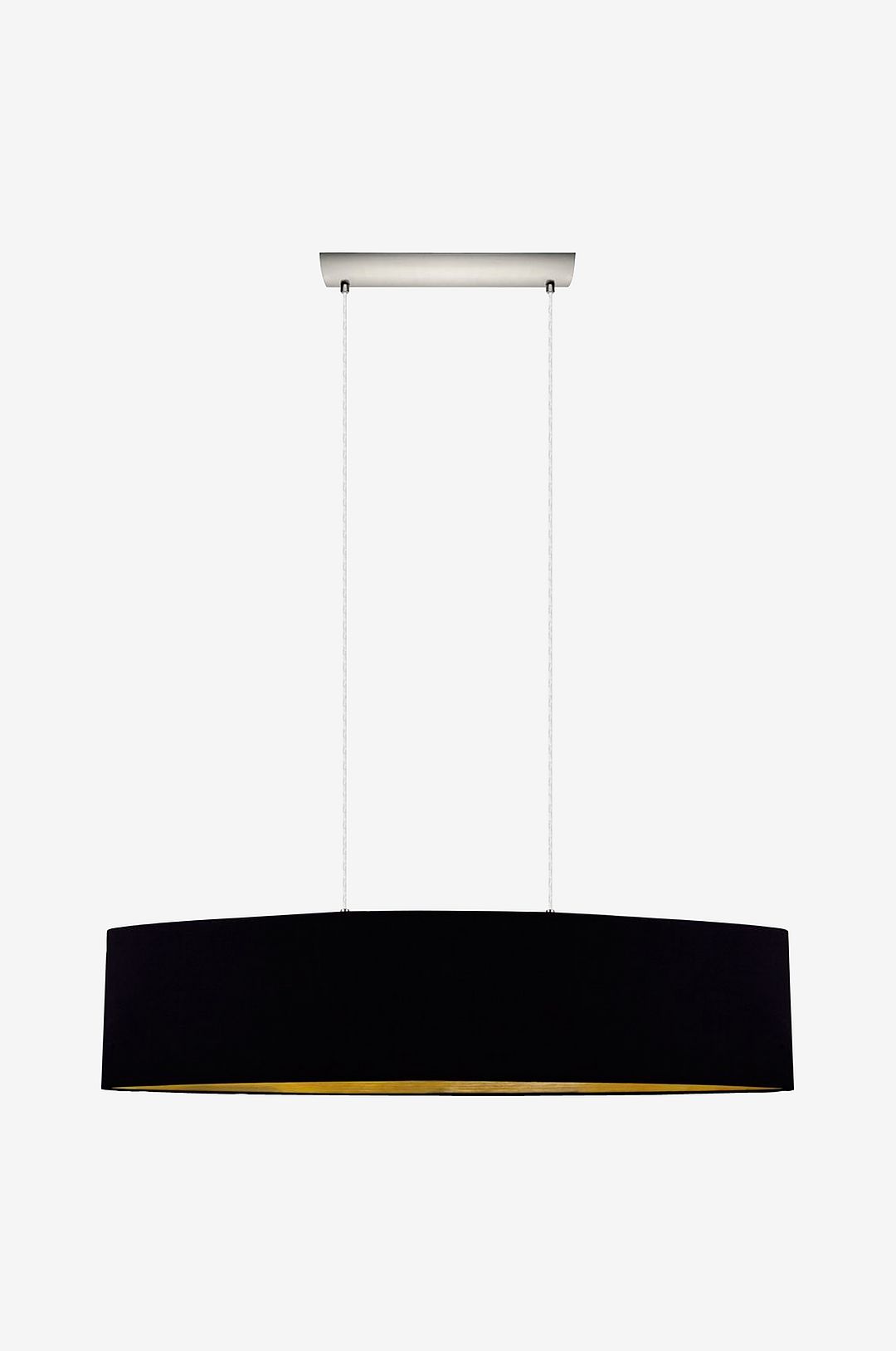 Den här taklampan från serien maserlo är tillverkad av stål i satin nickel och tyg i färgerna black och gold. Den har skyddsisolering och behöver två e27-taklampor för att lysa.