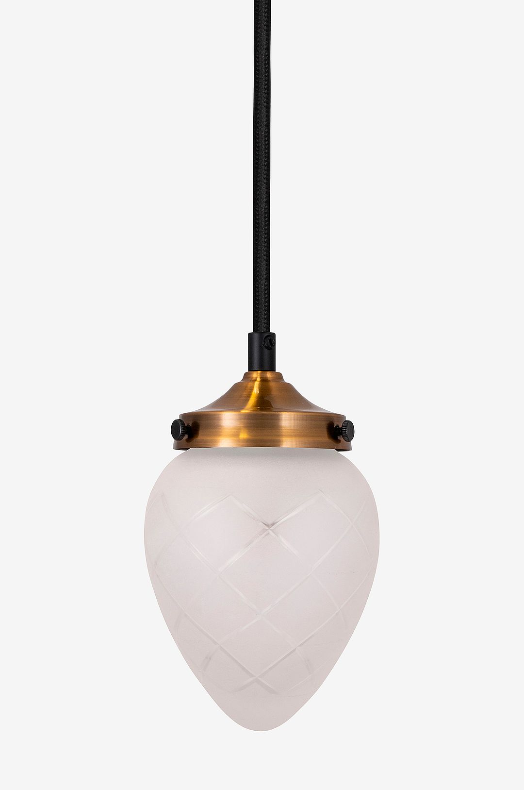 Taklampa Juni med sin vackra slipade kupa i glas och borstade mässingsdetaljer i metall för tankarna tillbaka i tiden till tidigt 1900-tal. Lampan har en 350 cm lång textilkabel med brytare. Design, GL Design Studio. Diameter 11 cm och höjd 18 cm. Lamphållare 1xE14. Max 40W. Takkontakt och ljuskälla medföljer ej. Jordad.