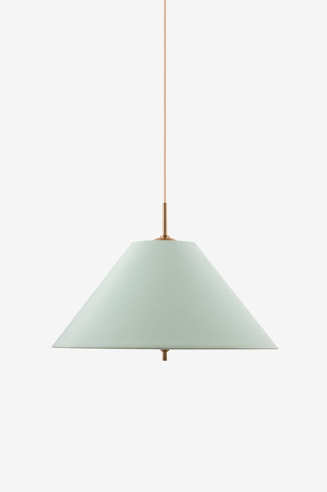 Pendeln iris blir en vacker juvel i taket. Den vackra textilskärmen är handgjord av bomull och kompletterad med mässingsdetaljer. Skärmen är nedtill täckt med ett bomullsbländskydd för att sprida ett behagligt ljus. Lampan har en 120 cm lång beige textilkabel med en takkopp i mässing, lampkontakt för takanslutning säljs separat.