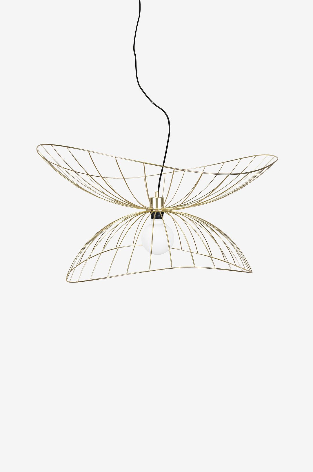 Mjuka och grafiska Ray i metall som likt en rocka är vågformad i ytterkant. Välj själv hur du vill arrangera de två skärmarna – ovanpå varandra eller inuti varandra för att få en lägre pendel med mer täckt ljuskälla. 120 cm lång svart textilkabel med vajer. Höjd 28-52 cm Diameter 70 cm. Lamphållare E27 Max 60W. Design: Patrick Hall. Takkontakt ingår ej på grund av nytt EU-direktiv. De finns att beställa separat. Ojordad