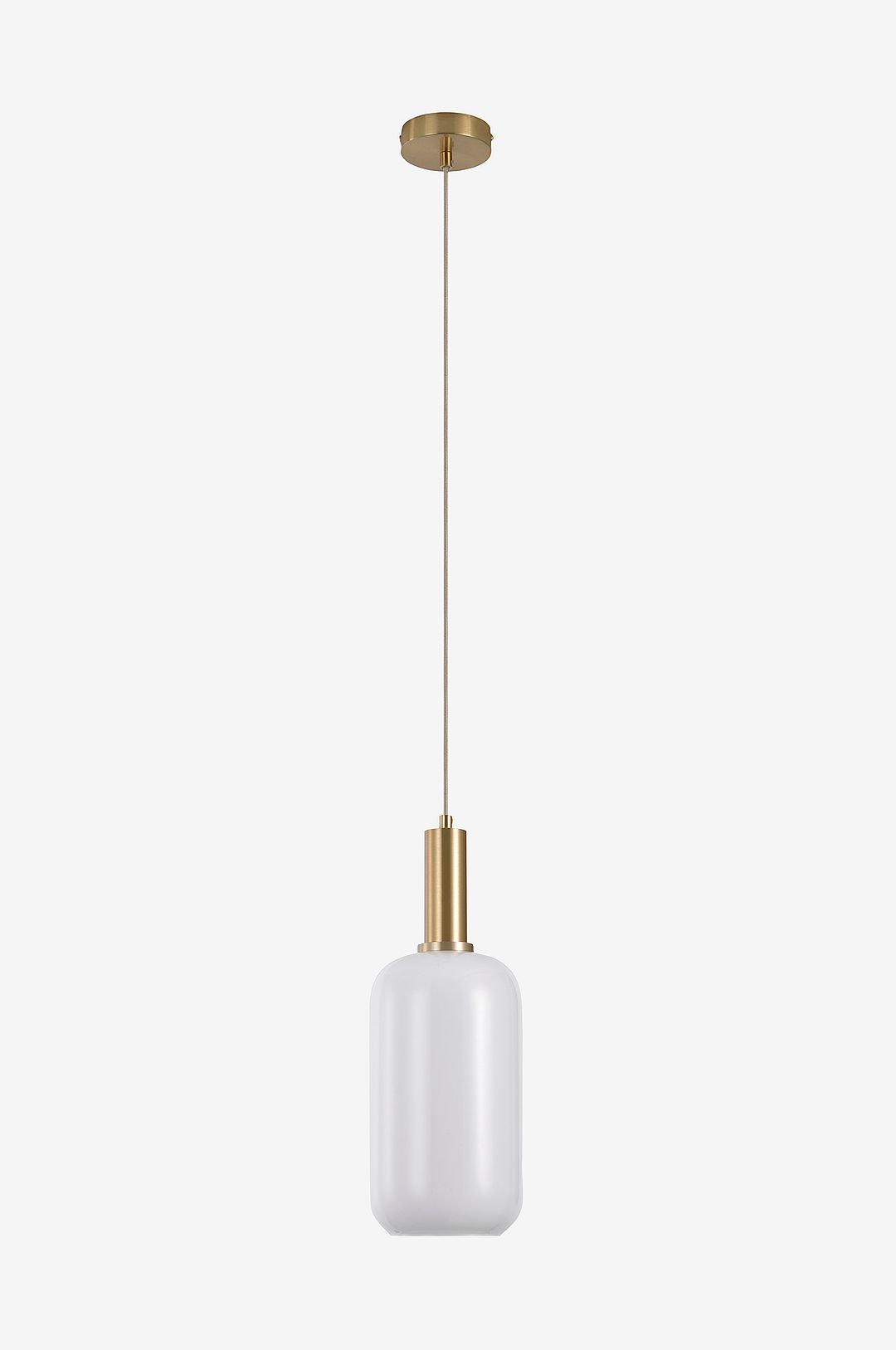 Taklampa av glas, mässingsfärgad sockel, cylinderformad, Ø13 cm, 150 cm textilsladd