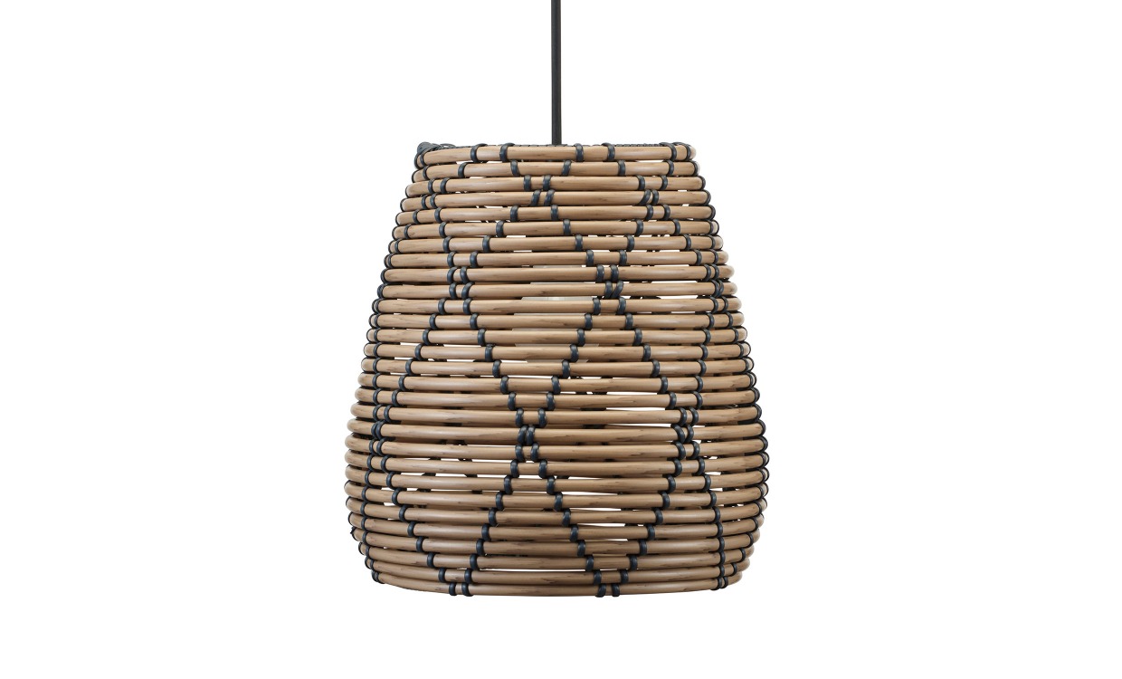 Lollo är taklampan som ger din utomhusmiljö en stilfull och inbjudande känsla. Tillverkad i kraftigare naturfärgad konstrotting med ett elegant svart mönster, är denna lampa både tålig och står emot väder och vind. Den flätade strukturen skapar ett vackert ljusspel i din trädgård eller på din uteplats, perfekt att samla dina nära vid. Design & egenskaperTaklampa för utomhusmiljö.Tillverkad i konstrotting med elegant svart mönster.Dimensioner: 30×28 cm.E27, max 15W.