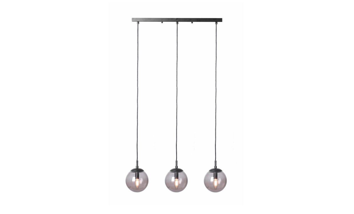 Lorna Trio Taklampa består av tre ljuskällor hängandes från ett metallfäste. Lampan är vacker med en stilren design och passar perfekt att sätta upp över matbordet. Fästet är tillverkat i metall och lampskärmarna i glas. Design & egenskaperTaklampa med tre hängande ljuskällor.Svart sladd, 1 m lång.Kontakten är jordad.Sockel E14, max 25W. Ljuskällor ingår ej.Lampan går att dimra vid anpassad ljuskälla.Leverans & förpackningAntal förpackningar: 1 stFörpackningsmått: 64x24x22,5 cmVikt: 2,5 kg