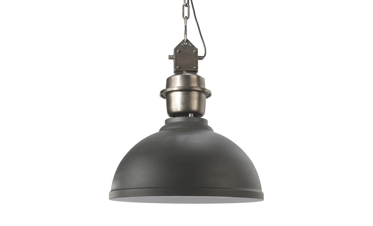 Manchester är en robust taklampa i metall med industriell känsla. Lampan har en diameter på 52 cm och hängs upp med hjälp av en kedja i råsilver. Denna spännande lampa passar fint över köksbord eller i vardagsrum.Design & egenskaperHärlig taklampa i industriell stil.Tillverkad i metall.Vacker matt grå färg på utsidan och vit på insidan.Plastsladd 1,6m, kedja i råsilver 1,2m, takkopp i råsilver.E27, max 40W. Ljuskälla och lamppropp med sladd ingår ej.