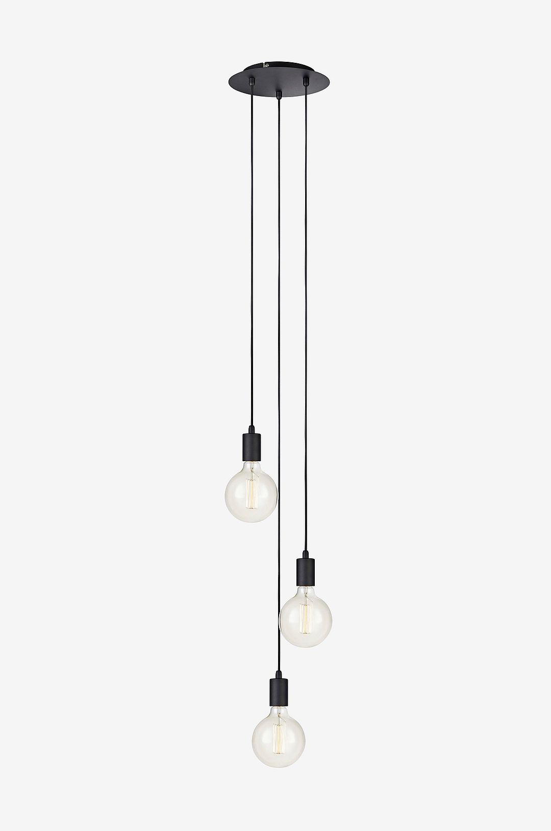 Sky taklampa i metall från Markslöjd. Takkopp i metall med textilklädda, 1,5 m långa sladdar. Längden på varje sladd kan justeras: Det finns dragavlastare på varje sladd som kan skruvas upp, därefter kan man ”mata” upp så mycket sladd som önskas för att uppnå rätt längd, därefter skruvas dragavlastaren åt igen. Stor lamphållare (E27) Max 60W eller motsvarande i halogen, lågenergi eller LED. Ljuskällor ingår ej. Höjd 161,5 cm, diameter 25 cm. Takkontakt ingår ej på grund av nytt EU direktiv. De finns att beställa separat.