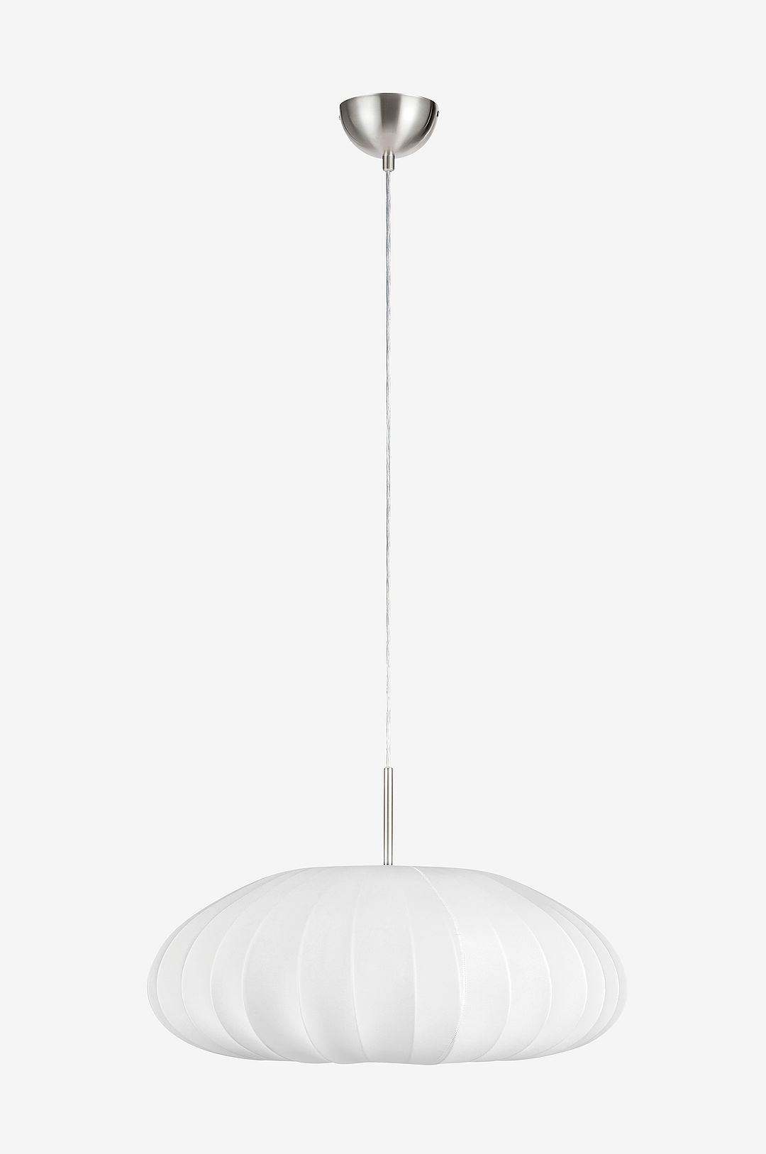 Mist taklampa från Markslöjd. Av metall och skärm i textil. 1,5 m vit textilkabel. Krokupphäng. Max 1x25W. E27-sockel. Diameter 54 cm och höjd 33 cm. Ljuskälla ingår ej. Jordad. Takkontakt ingår ej på grund av ett nytt EU-direktiv. Takkontakter finns att beställa separat.