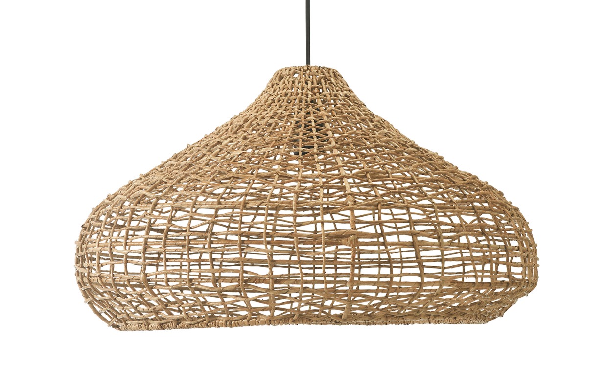 Mira är en vacker taklampa tillverkad för hand i flätad lampakanay, ett naturligt material som växer i Filippinerna och är känt för sin hållbarhet och formbarhet. Den rundade och luftiga formen ger ett organiskt uttryck och skapar en lugn och trivsam känsla i uterum, på altanen eller i växthuset. Design & egenskaperVacker taklampa i handflätad lampakanay.Lampans diameter är: 58 cm.E27, max 15W, ljuskälla ingår ej.Lampan levereras med svart sladd.För utomhusbruk.Färg och form kan variera något eftersom den är tillverkad i naturmaterial.