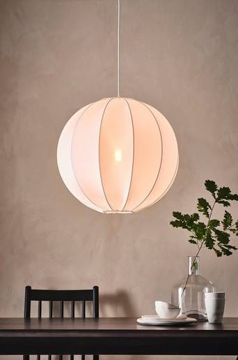 Rund taklampa av polyestertyg och metallstomme. En härlig lampa som också blir en stilren inredningsdetalj i ditt hem. Textilsladd, sladdlängd 1,2 m. Takplugg ingår ej p.g.a. nya EU-regler. Den finns att köpa separat och heter ROOF MOON takplugg. Viss montering krävs, monteringsanvisningar medföljer. Material: Metall och polyester. Storlek: ø 55 cm. Sockel/lampa: 1 st E27 max 25 w glödlampa eller max 7 w lågenergilampa. Ljuskälla medföljer ej.