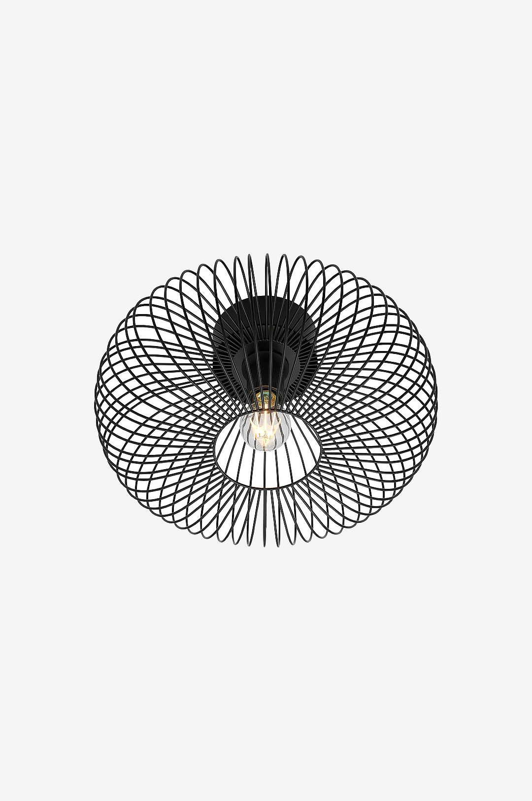 Beroni taklampa har en distinkt och minimalistisk design som skapar ett fascinerande ljus- och skuggspel. De böjda metalltrådarna skapar en öppen och luftig look, där du kan skapa ditt eget designuttryck genom att lägga till en dekorativ glödlampa.